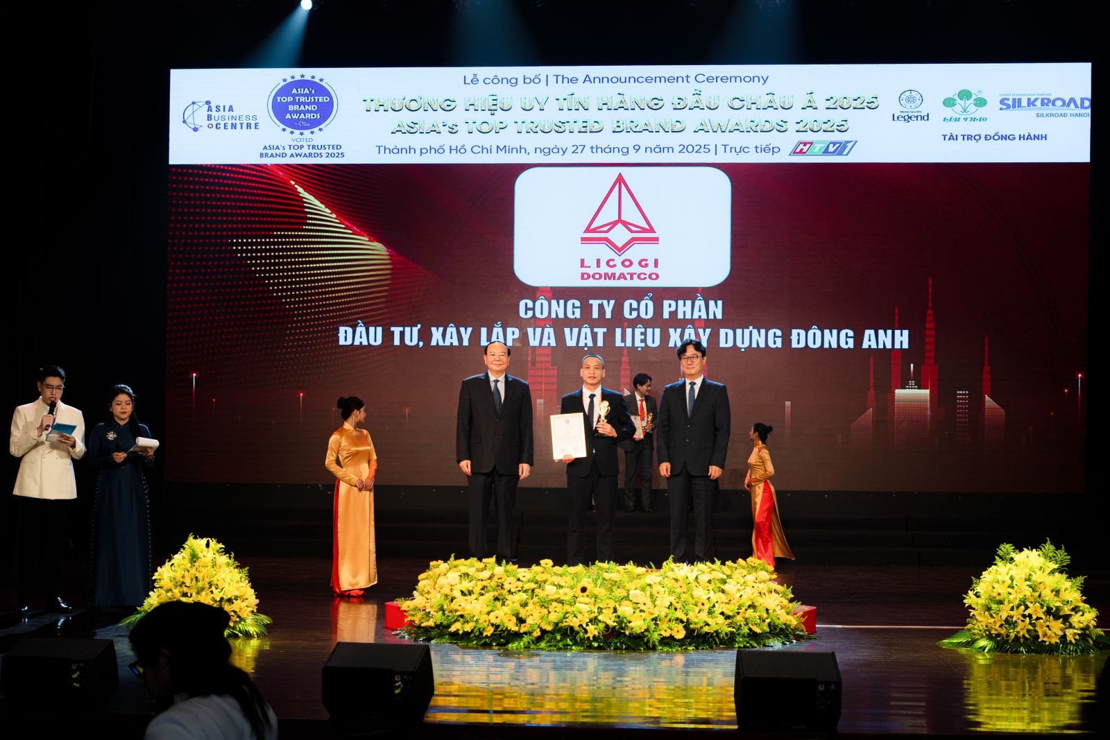 Ngày 27/9/2025, tại TP. Hồ Chí Minh, Công ty Cổ phần Đầu tư, Xây lắp và Vật liệu Xây dựng Đông Anh (LICOGI DOMATCO) đã vinh dự được trao tặng giải thưởng “Asia’s Top Trusted Brand Awards 2025 – Thương hiệu uy tín hàng đầu Châu Á”.