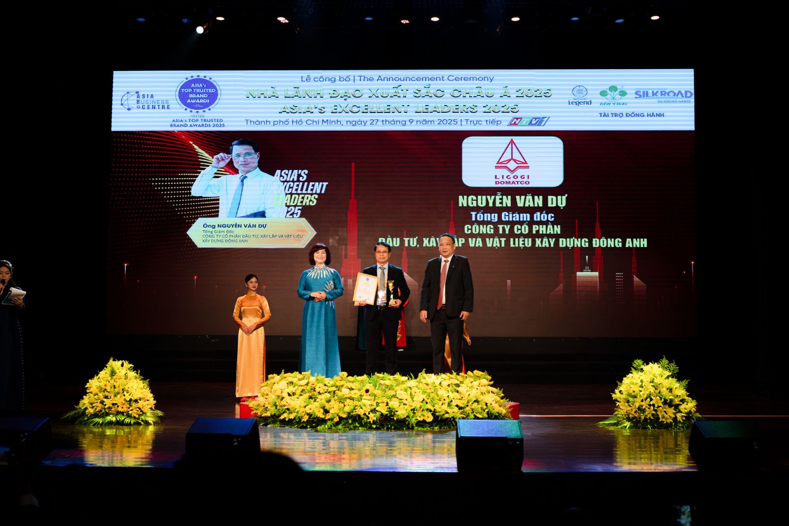 Ngày 27/9/2025, tại TP. Hồ Chí Minh, ông Nguyễn Văn Dự – Tổng Giám đốc công ty đã được xướng tên tại lễ vinh danh Asia’s Excellent Leaders 2025 (Nhà lãnh đạo xuất sắc Châu Á 2025). Đây là phần thưởng cao quý, ghi nhận bản lĩnh, tầm nhìn và những nỗ lực không ngừng nghỉ của ông trên con đường dẫn dắt LICOGI DOMATCO khẳng định vị thế trên thị trường.
